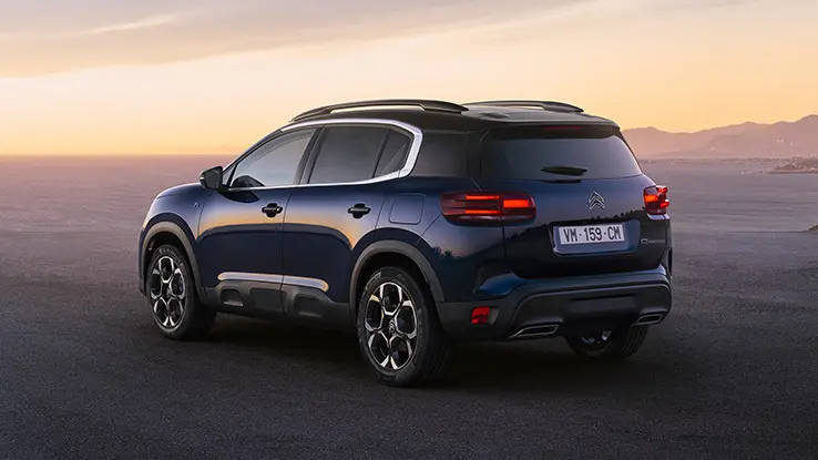 Com uma silhueta robusta e contemporânea, o Citroën C5 Aircross marca presença com uma frente arrojada, equipada com a icónica assinatura luminosa em LED em formato “V”. As suas linhas esculpidas, aliadas a detalhes cromados e luzes traseiras LED de efeito dinâmico, realçam uma estética sofisticada e fluida. Este design marcante confere-lhe uma identidade única e uma presença imponente, tornando-o uma verdadeira força de atracção em qualquer estrada.